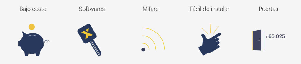 El sistema es perfecto para instalaciones donde un sistema ONLine no es necesario. Es una solución simple y económica que ofrece haste 65.025 puertas/accesos por sitio.